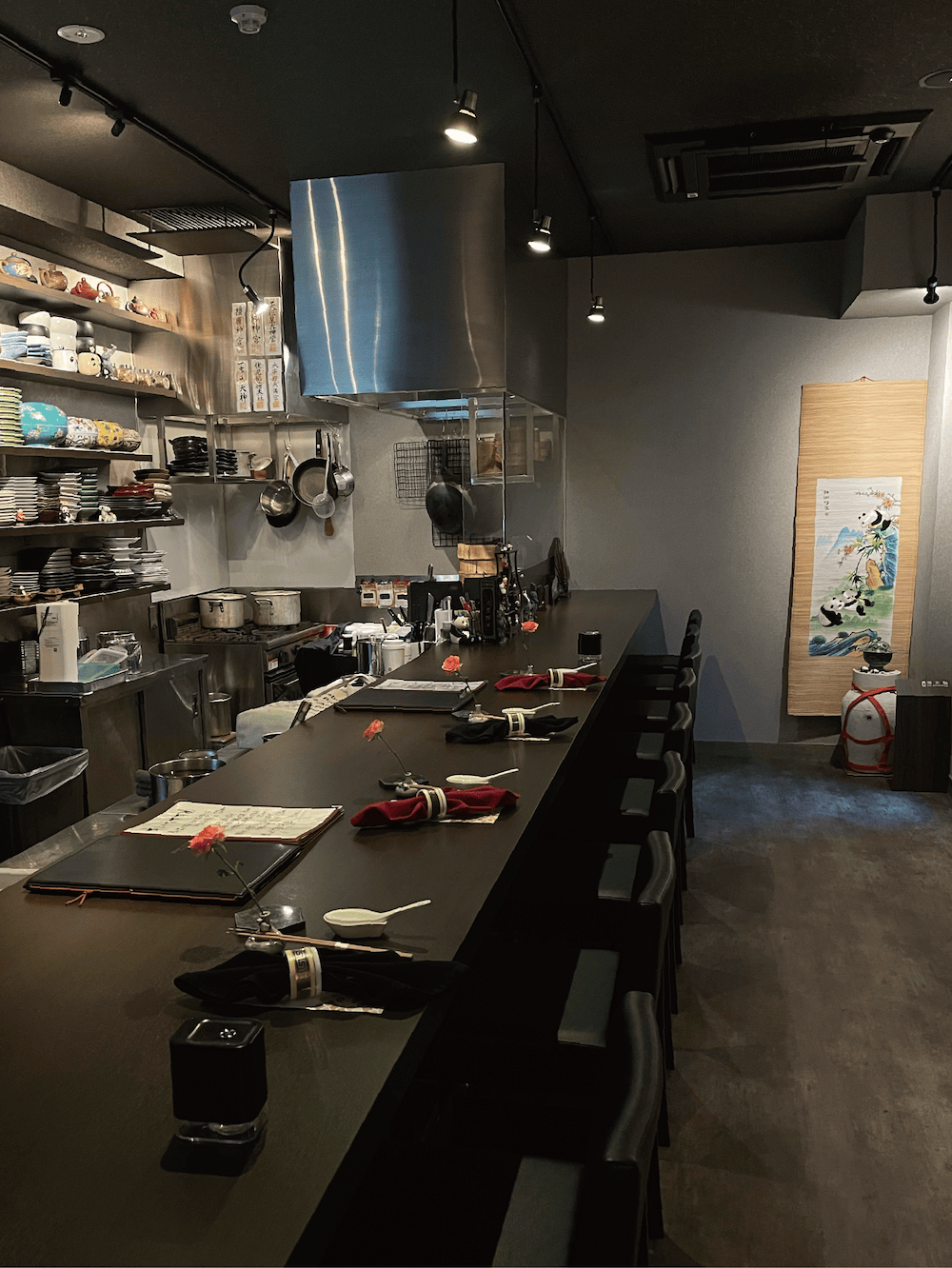 鍋を振る音や香りなどライブ感も味わえるカウンターは特等席。